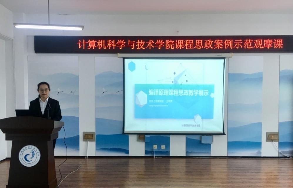 然后,2021年公司教师课程思政能力大赛获奖教师王翠青作示范观摩课。她以编译原理课程为例,从词义分析、语法分析、中间代码优化、编译程序发展历程等方面分享了思政元素的发掘方法,通过案例教学、微课视频、课后小组讨论等教学方法,融入人文因素和情感因素,增强专业课教学的吸引力,提升员工学习的兴趣。