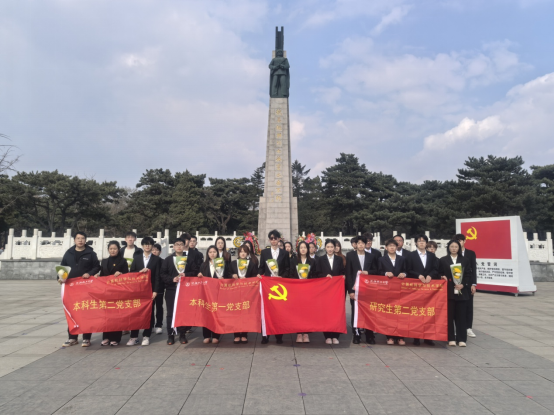陵园内苍松肃立,翠柏静哀。纪念碑前,全体党员集体肃立,向战斗英雄默哀致敬。默哀后,各位党员祭扫了烈士墓,向杨根思、黄继光、邱少云等烈士墓献花,在邱少云烈士墓前,本科生第一党支部党员马婧怡同学为大家讲述了邱少云烈士的光荣事迹。随后,党员们瞻仰了烈士英名墙,烈士们一个个金灿灿的名字,述说着先烈们英勇而光辉的事迹。最后,在本科生第一党支部书记赵岳老师的带领下,全体党员高举右拳,重温入党誓词,铮铮誓言,铿锵有力。
